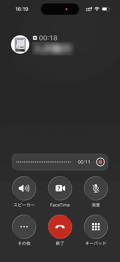 期待をしながら早速、外部の電話機から「iPhone 15 Pro」に発信しました。「iPhone 15 Pro」で受信し、「通話録音」ボタンをタップ。
