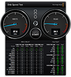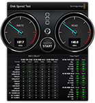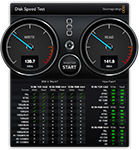 HDDの転送スピードの実測値のチェックにはベンチマークのアプリケーションが必要です。今回は、最近人気のフリーウェアの「Disk Speed Test」を「Mac App Store」からダウンロードして使用しました。
