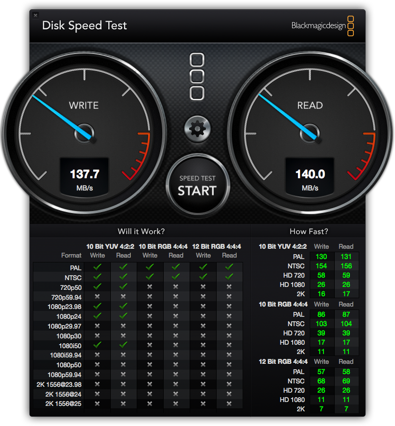 しかし、スペック通りのスピードが出るのか半信半疑なので今回、USB3.0の実測値を測定しFireWire800との差を確認する事にしました。