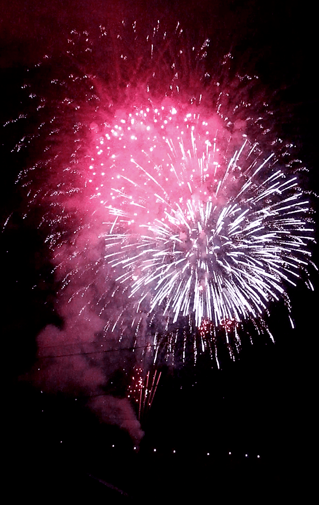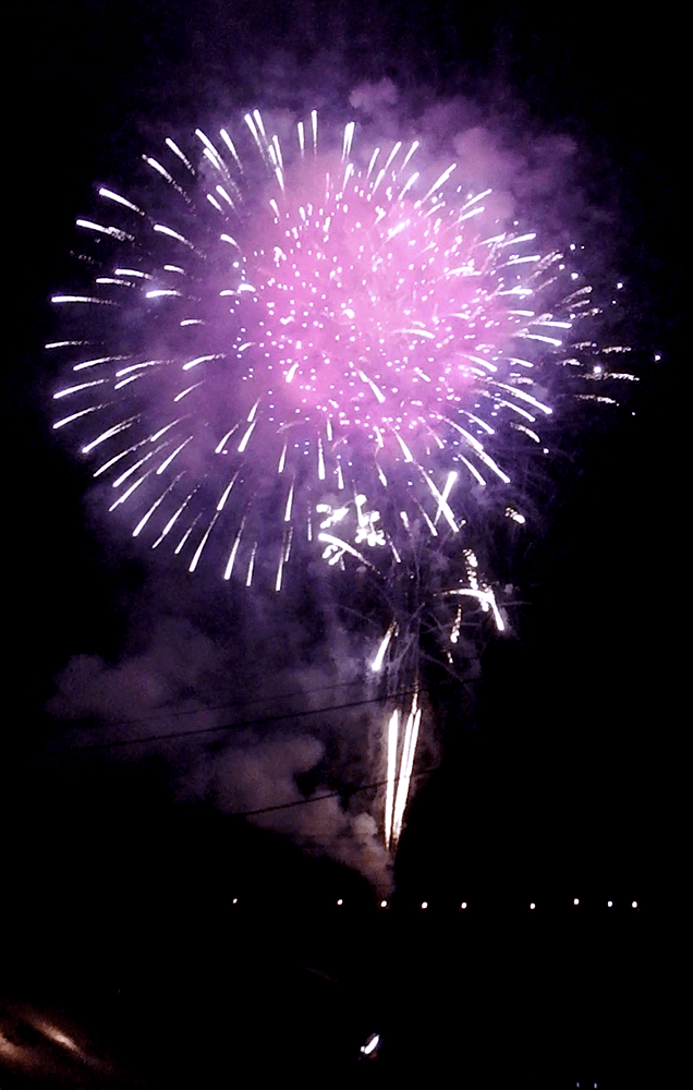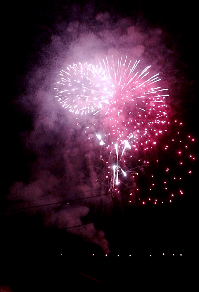 西武秩父駅前の通りを通ると羊山から打ち上げている花火がよく見えたので少々花火見物をしました。