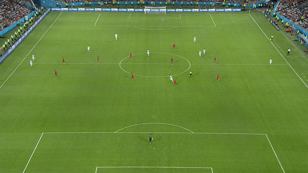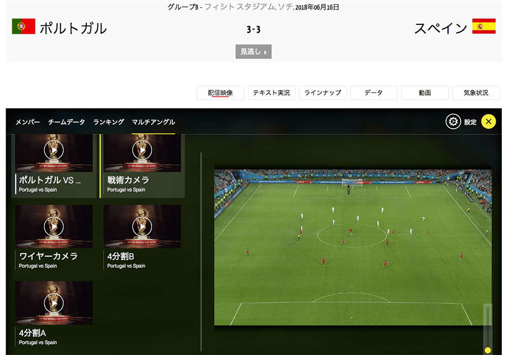 私は、生中継を見たスペイン代表対ポルトガル代表を、この戦術カメラで見直しましたが、テレビ中継では見えなかった両チームのポジショニング、システムの移動などが明白となりました。