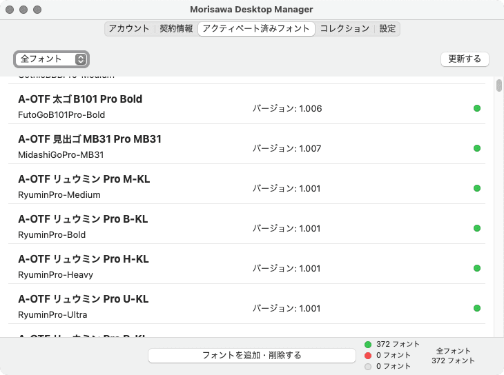 必要なフォントを選択したら、「Morisawa Desktop Manager」に選択したフォントが反映していることを確認して完了です。