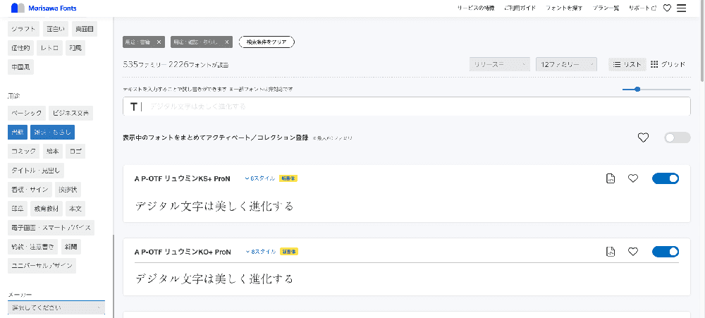 これで、「Morisawa Font」の豊富なフォントが年間990円で使い放題になります。