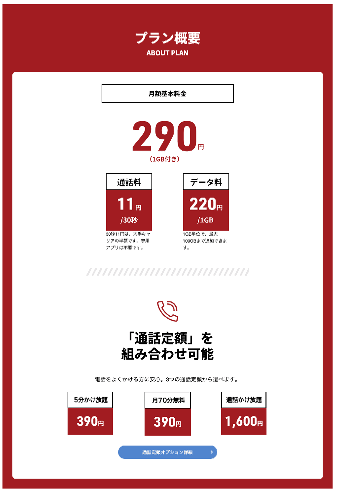 フレキシブルで使い勝手は良さそうな「月70分無料通話」。しかし、その最大の魅力は月額料金が390円〔税込)というところです。